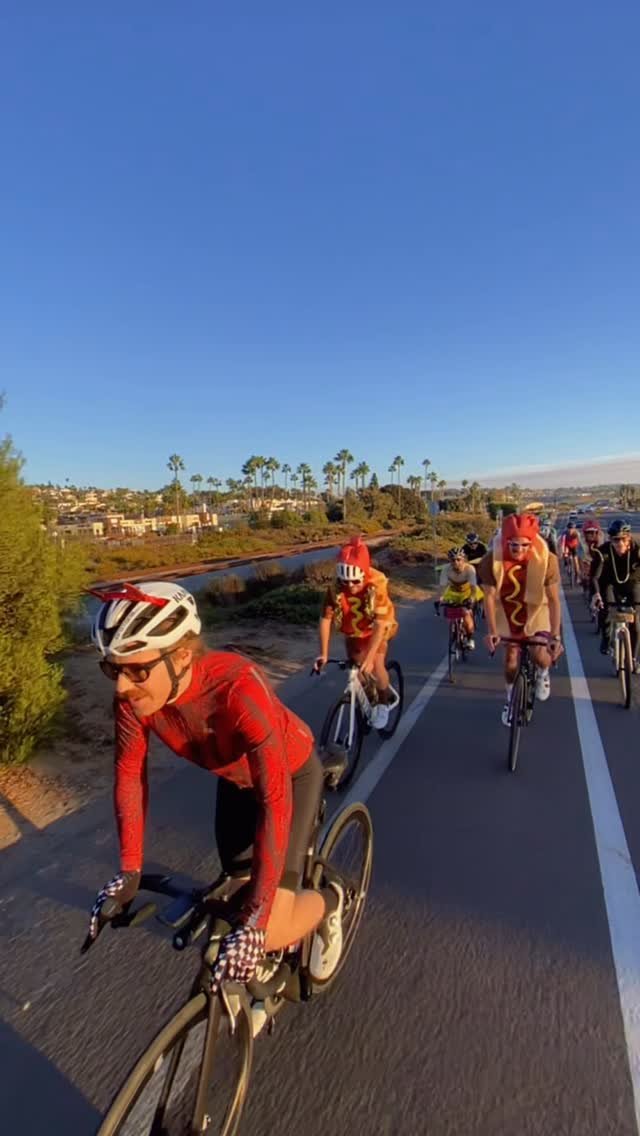 We roll at 9 AM from Best Pizza in Cardiff. Usually chill. Sometimes spicy. No drop ride. Multiple groups. Come meet new friends. Celebrate afterwards. Check insta for routes/roll times. Pizza and beers at Best Pizza after the ride to cement the vibe.